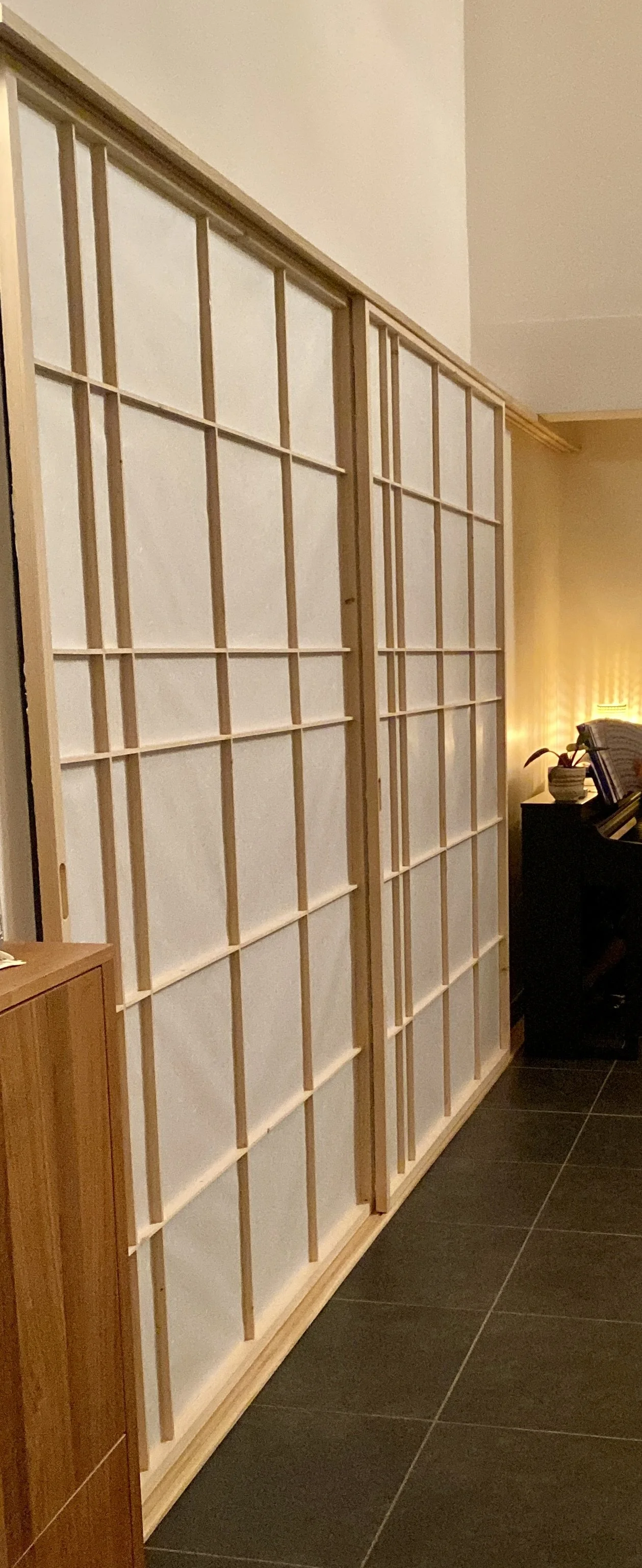 Inspirés de la tradition japonaise, les 'shoji' sont de véritables écrans de lumière. Leur structure en bois fin et leur surface translucide laissent passer une clarté douce, créant une ambiance paisible et harmonieuse. Ils se posent en séparation de pièce, en porte coulissante ou simplement en alternative élégante aux rideaux. Installé à Montpellier